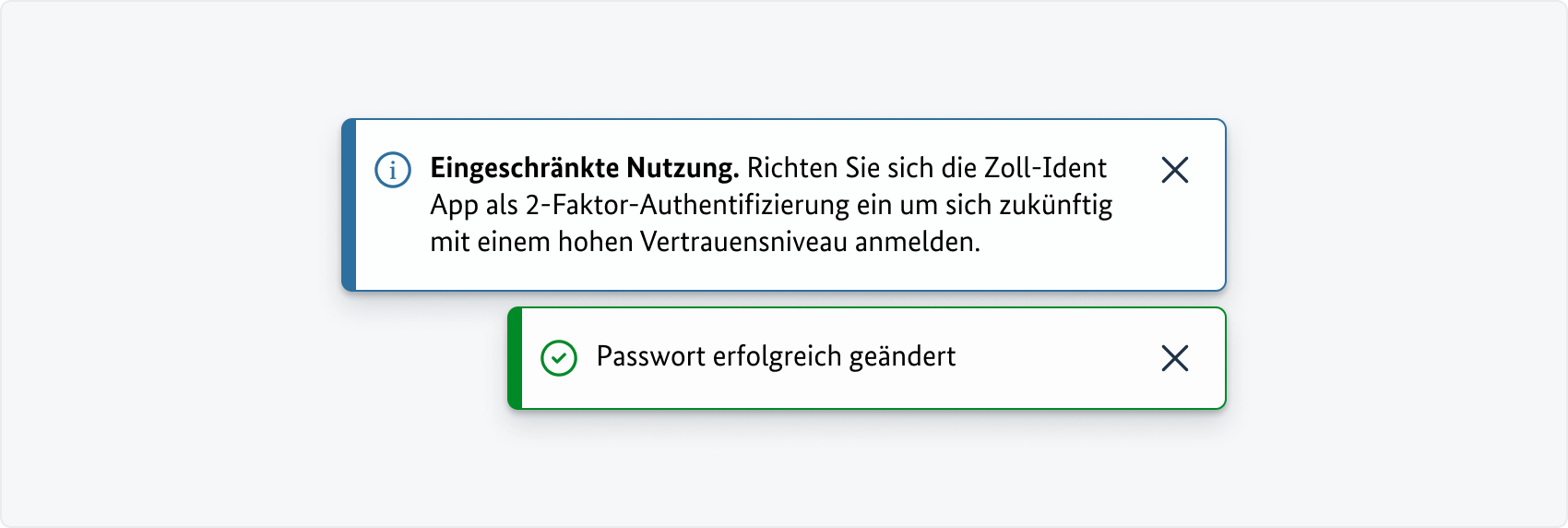 So oft wie möglich werden sprachlich standardisierte Erfolgsmeldungen verwendet wie z. B. „Vielen Dank! Sie haben die E-Mail-Adresse für die Benachrichtigung zum Datenabruf erfolgreich bestätigt.“ oder „Derzeit befinden sich keine Nachrichten in Ihrem Posteingang.“