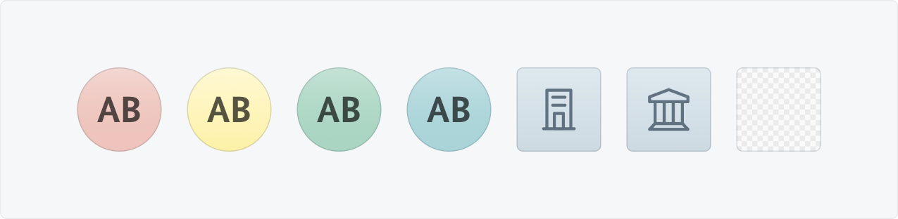 Avatare unterstützen die Zuordnung von Aktionen und Inhalten zu einer Person, einem Unternehmen oder einem Unternehmensbereich und unterstützen damit die Orientierung im Interface. Sie stellen ein Benutzerkonto (runde Variante) oder ein Profil (quadratische Variante) visuell dar.