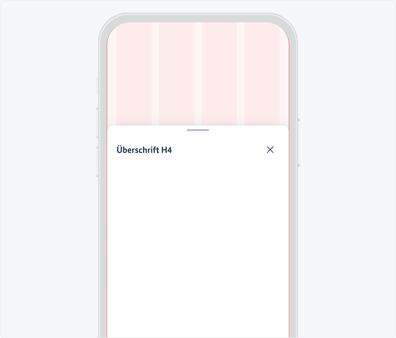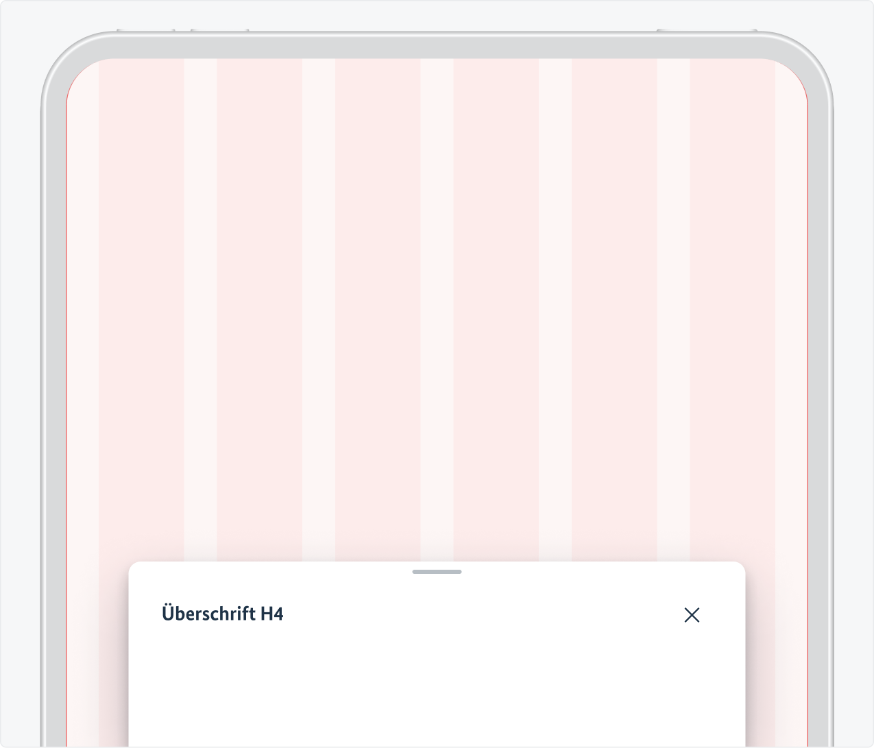 Bottom Sheets zeigen ergänzende Inhalte und Aktionen auf einem mobilen Bildschirm an. Sie sind eine vielseitige Komponente, die eine große Vielfalt an Informationen und Layouts enthalten können, darunter Menü-Elemente, Linklisten, Text- und Inhalts-Elemente, Aktionen wie Buttons und weitere Formularelemente, Suche, die Funktionen hinter Kontextmenüs, ergänzende Inhalte und vieles mehr. Bottom Sheets werden nur in mobilen Anwendungen verwendet.