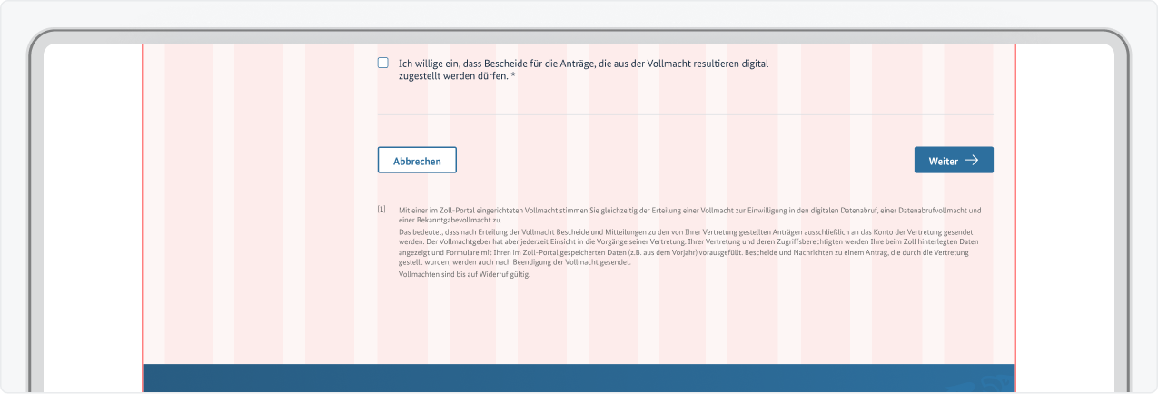 - In Formularen werden Fußnoten nicht unter der Fortschrittsnavigation platziert.