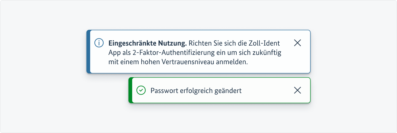 So oft wie möglich werden sprachlich standardisierte Erfolgsmeldungen verwendet wie z. B. „Vielen Dank! Sie haben die E-Mail-Adresse für die Benachrichtigung zum Datenabruf erfolgreich bestätigt.“ oder „Derzeit befinden sich keine Nachrichten in Ihrem Postfach.“