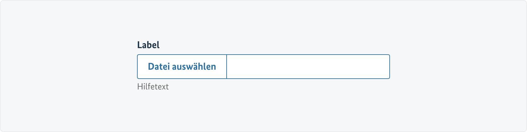 Die initiale Darstellung ohne Interaktion durch die Nutzenden. Der input type=file besteht aus einem Standard-Button, der zusätzlich zur Beschriftung ein Icon enthält.