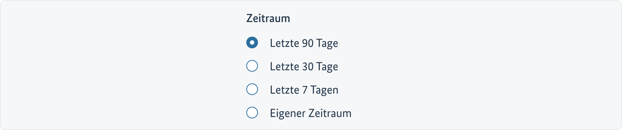 Bei einer geringen Anzahl Optionen mit kurzen Label-Texten wird die Verwendung von Radiobuttons empfohlen (z. B. Herr / Frau), bei einer längeren Liste von Optionen mit kurzen Labeltexten (z. B. einer Länderauswahl) werden Select oder Combobox als geeigneteres UI-Element empfohlen.