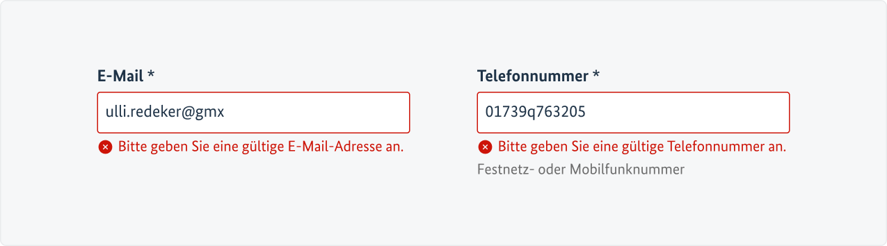 - Browser-seitige Plausibilitätsprüfung (als Komfortmerkmal, darf nicht die zusätzliche serverseitige Plausibilitätsprüfung ersetzen)