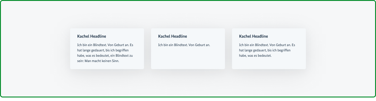 Kacheln einer Zeile oder eines Kachel-Grids nehmen unabhängig von ihrem Inhalt immer die Höhe der höchsten Kachel ihrer Zeile ein.
