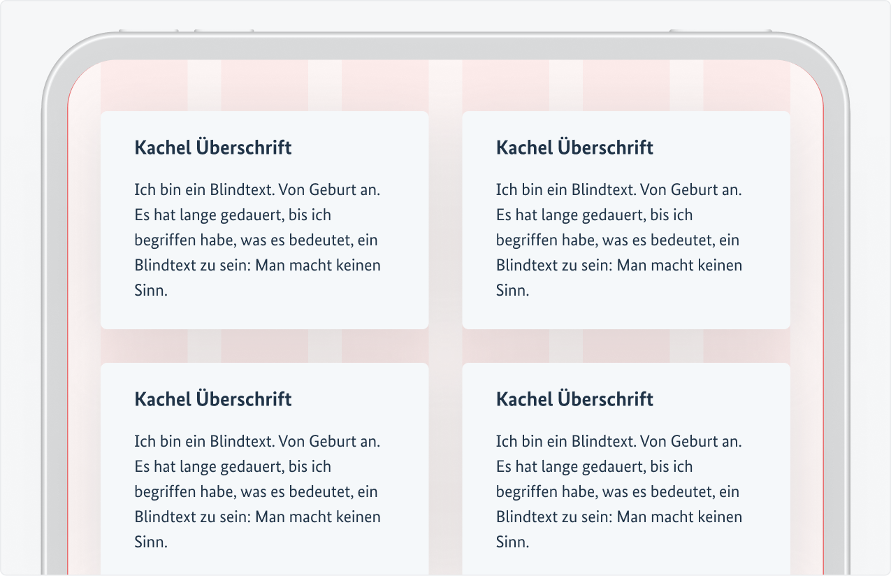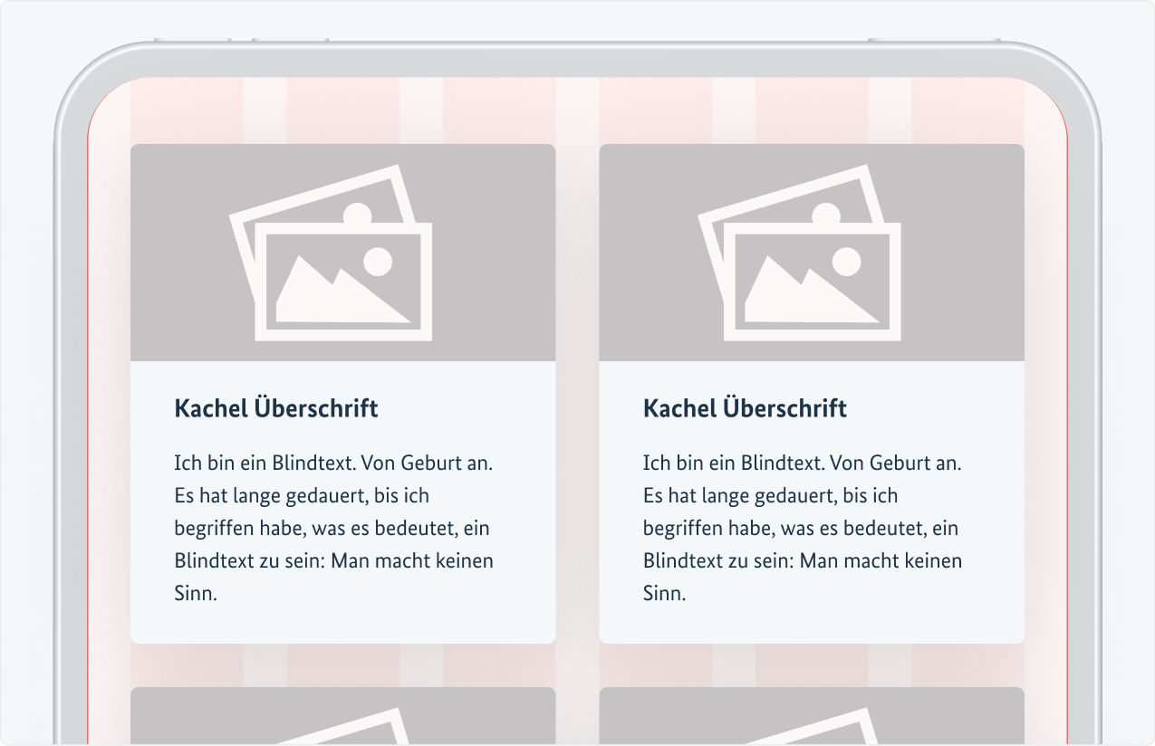 Kacheln werden verwendet, um Inhalte und Links mit zusätzlichen Informationen zu gruppieren und anschaulich von weiteren Inhalten abzugrenzen.