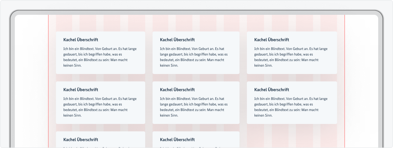 Kacheln werden nur innerhalb des Inhaltsbereichs platziert (erste bis letzte Spalte des Grids).