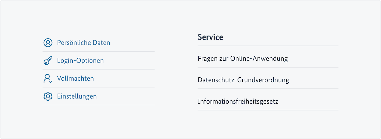 Sie können optional mit sinnbildenden Icons versehen werden, um die Erfassbarkeit zu unterstützen und den Zweck des Linkziels zu kommunizieren. Die Zustände von Hyperlinks in Linklisten weichen von herkömmlichen Links in Fließtexten ab, da sie als eigenständiges Navigationselement erkennbar sein sollen.