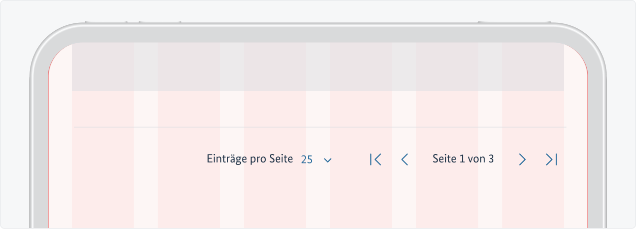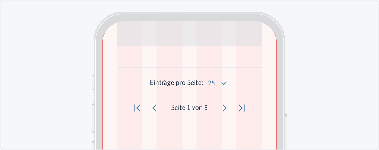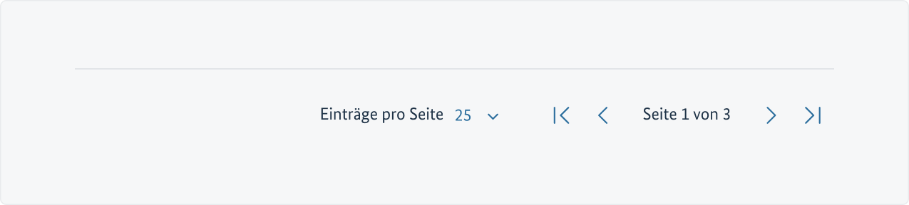 Bei Bedarf enthalten Datentabellen eine Paginierung, die unterhalb der Tabelle angezeigt wird. Diese darf allerdings erst verwendet werden, wenn es sich um größere Datenmengen handelt.