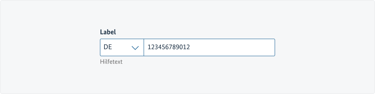 Kombinierte Felder aus Select und Input Text sind zwei eigenständige Felder, die funktional zusammengehören und optisch als eine Einheit wirken sollen. Nachdem beide Felder befüllt sind bilden sie einen gemeinsamen Wert.