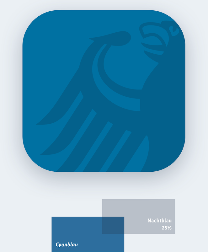 Daher wird die Adlerschwinge in Nachtblau und transparent (25%) dargestellt. Durch diese Farbgebung hebt sich die Adlerschwinge sichtbar vom eigentlichen Hintergrund ab und bildet gleichzeitig einen deutlichen Kontrast zum Symbol.